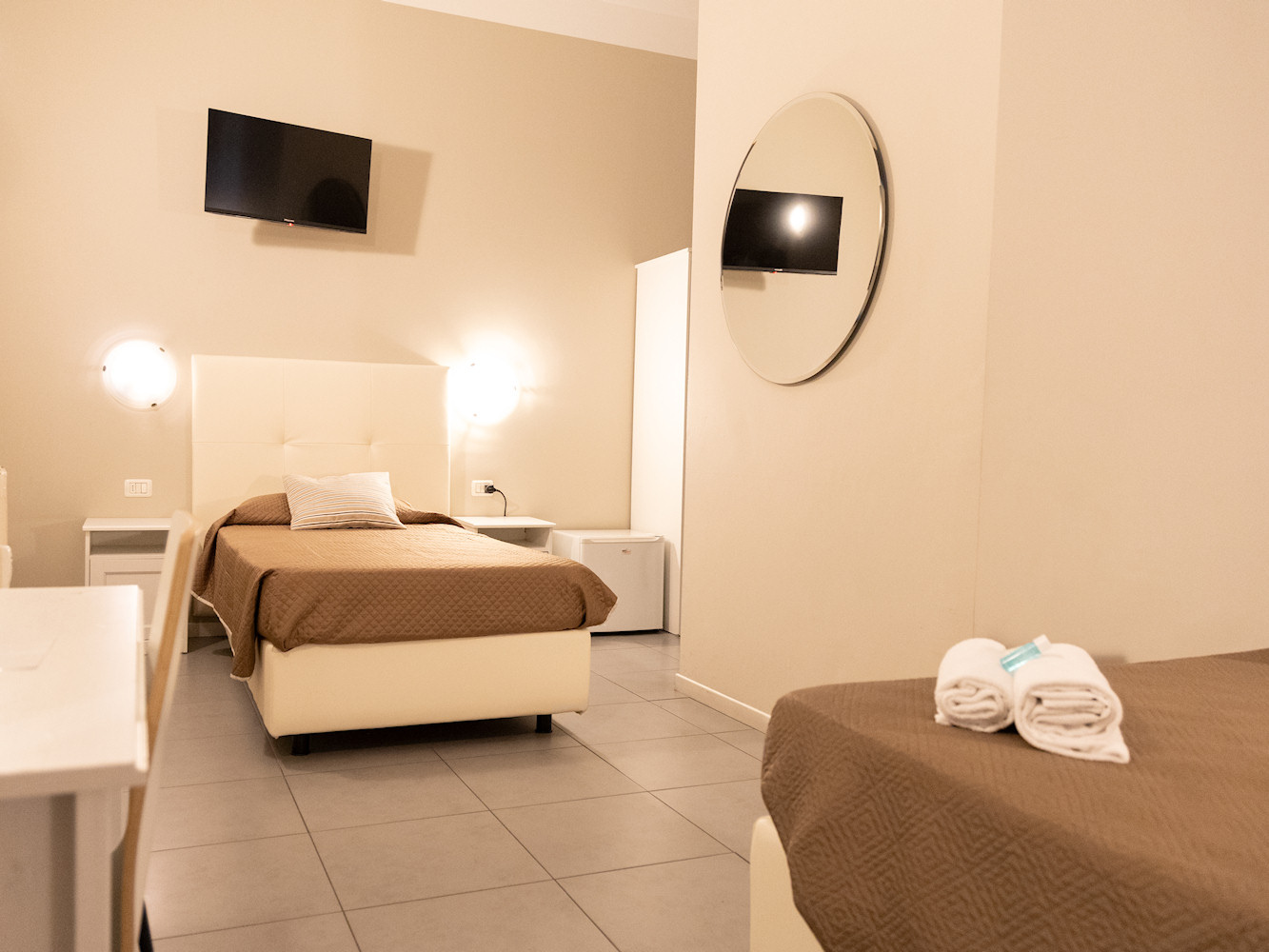 The rooms, modern and functional, are equipped with a private bathroom with shower, Wi-Fi, LCD TV, and heating.